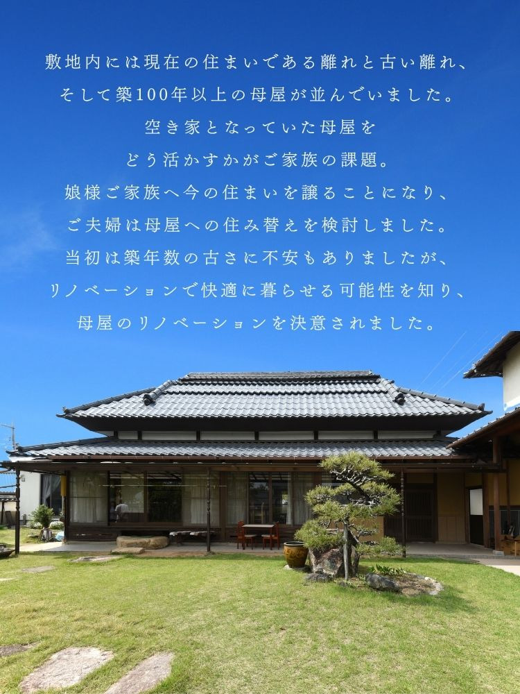 築100年以上、代々受け継がれてきた思い出深い母屋を、快適で安心して暮らせる住まいへリノベーション。