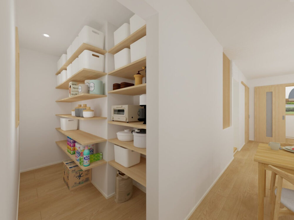 ファミリークローゼットや納戸、パントリーを新設。物が片付くゆとりある住まいに。