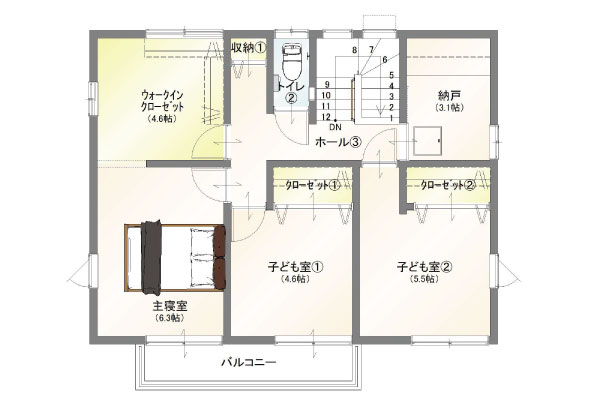 キッズスペースやゲストルーム、洗濯物を畳んだり、ゴロンと寝転がってくつろぐスペースなど様々な場面で活躍する空間です。