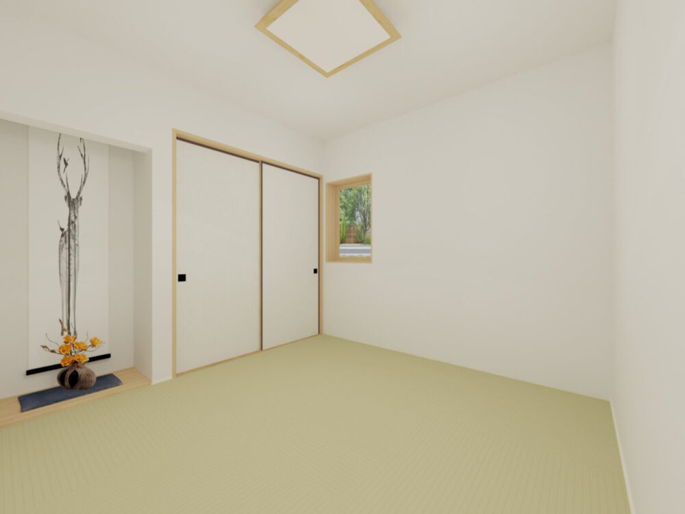 LDKと和室間は建具を付けず格子でつなげ、明るさと開放感を感じる和室空間。