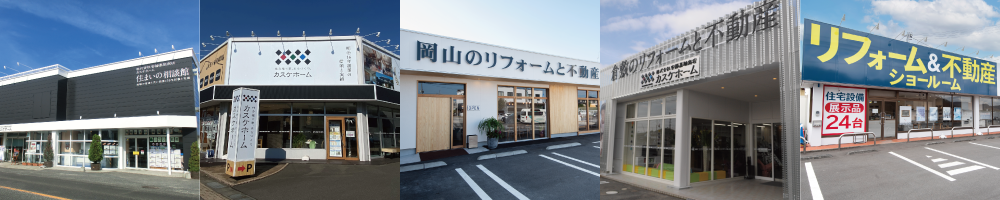 - カスケホーム全店(玉島本店/笠岡店/倉敷店/岡山店/吉備総社店)