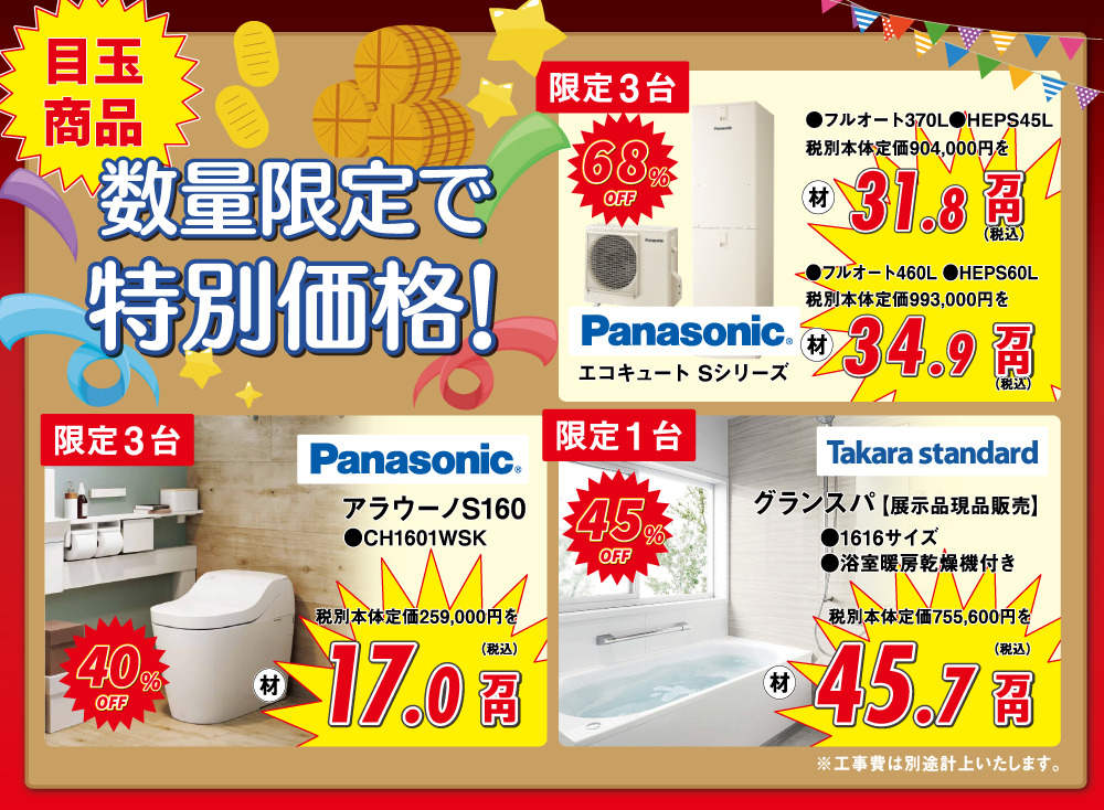 今回の新春住宅博で特に注目していただきたい、選りすぐりの目玉商品をご紹介します!