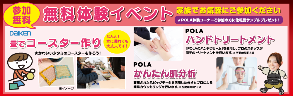 どなたでも無料でご参加いただけ、楽しい思い出を作れる体験イベントをご用意しました。