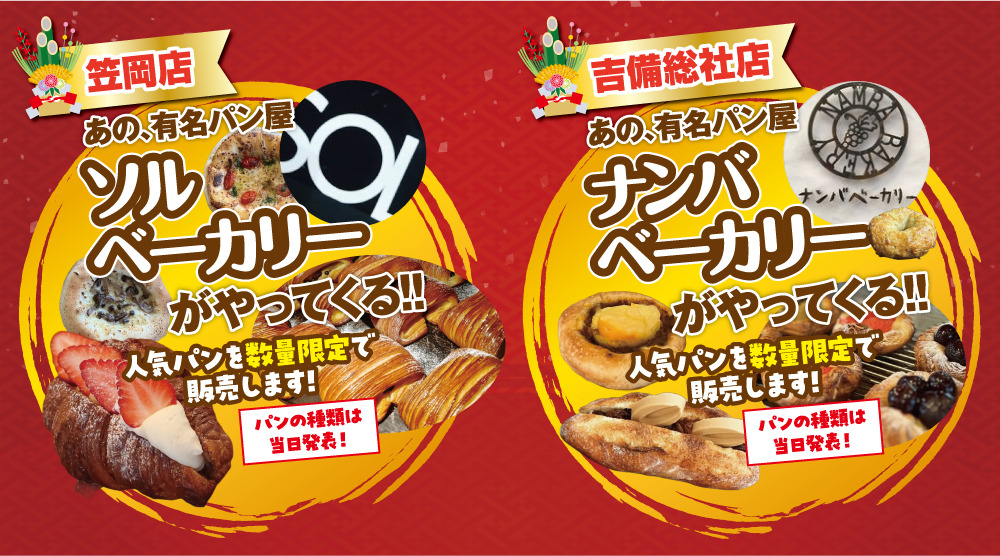 両店舗とも、店舗近隣の人気ベーカリーの美味しいパンを数量限定で販売いたします!
