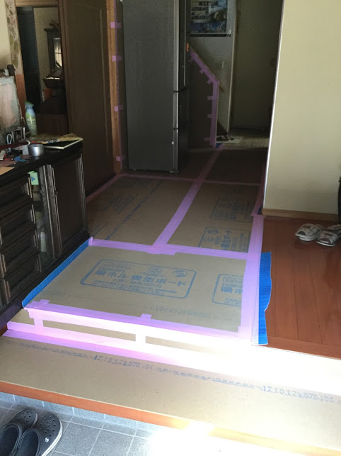 明日解体着工のお客様の所へ養生と家具移動に行ってまいりました。既存の触らない所を工事の間、材料や道具を持って行き来しますので傷を付けない為に養生をさせてもらいました。森永