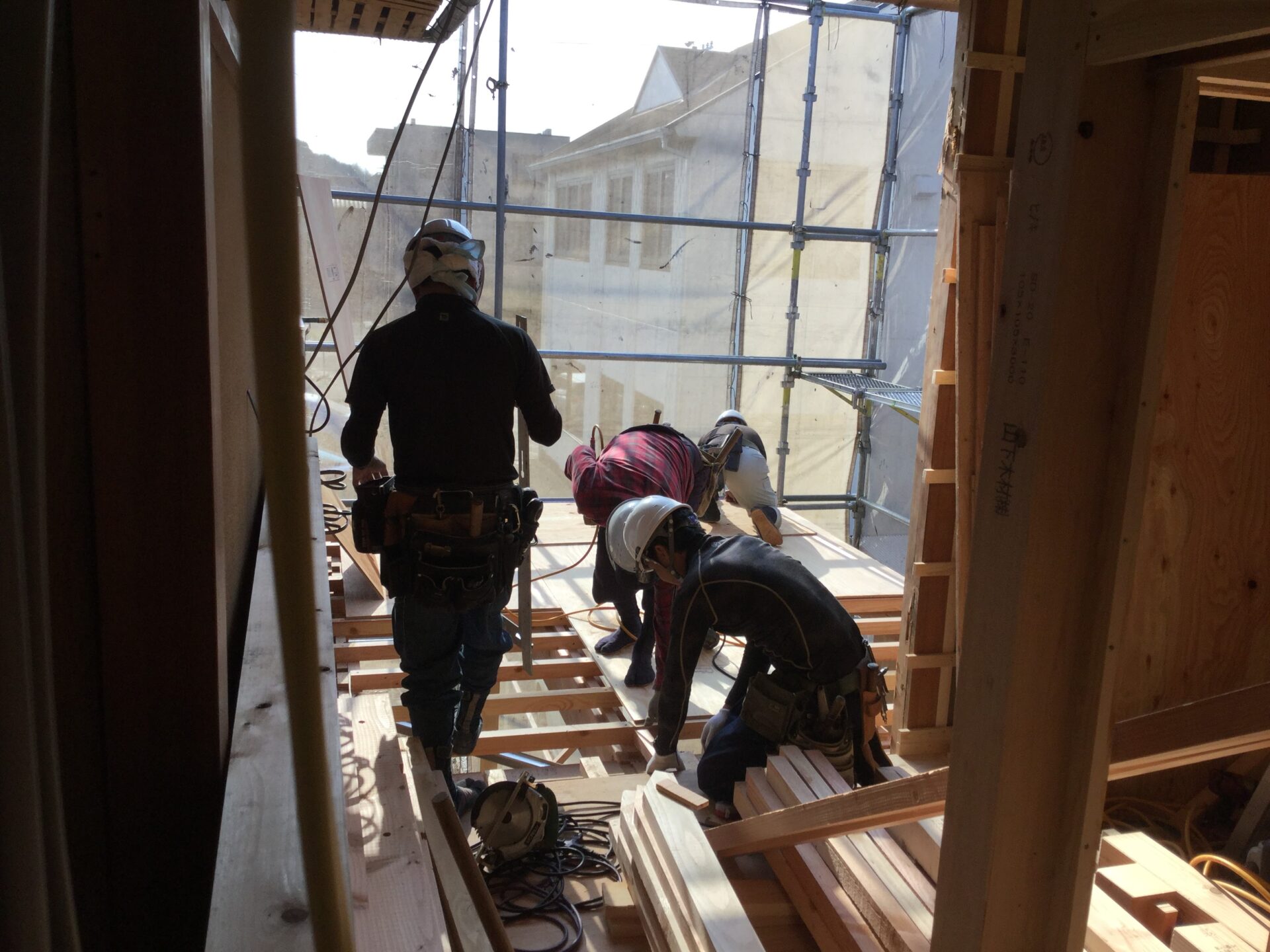 こちらの現場は全面改装+総二階の増築をご依頼いただきました。今まさに増築中でございます。