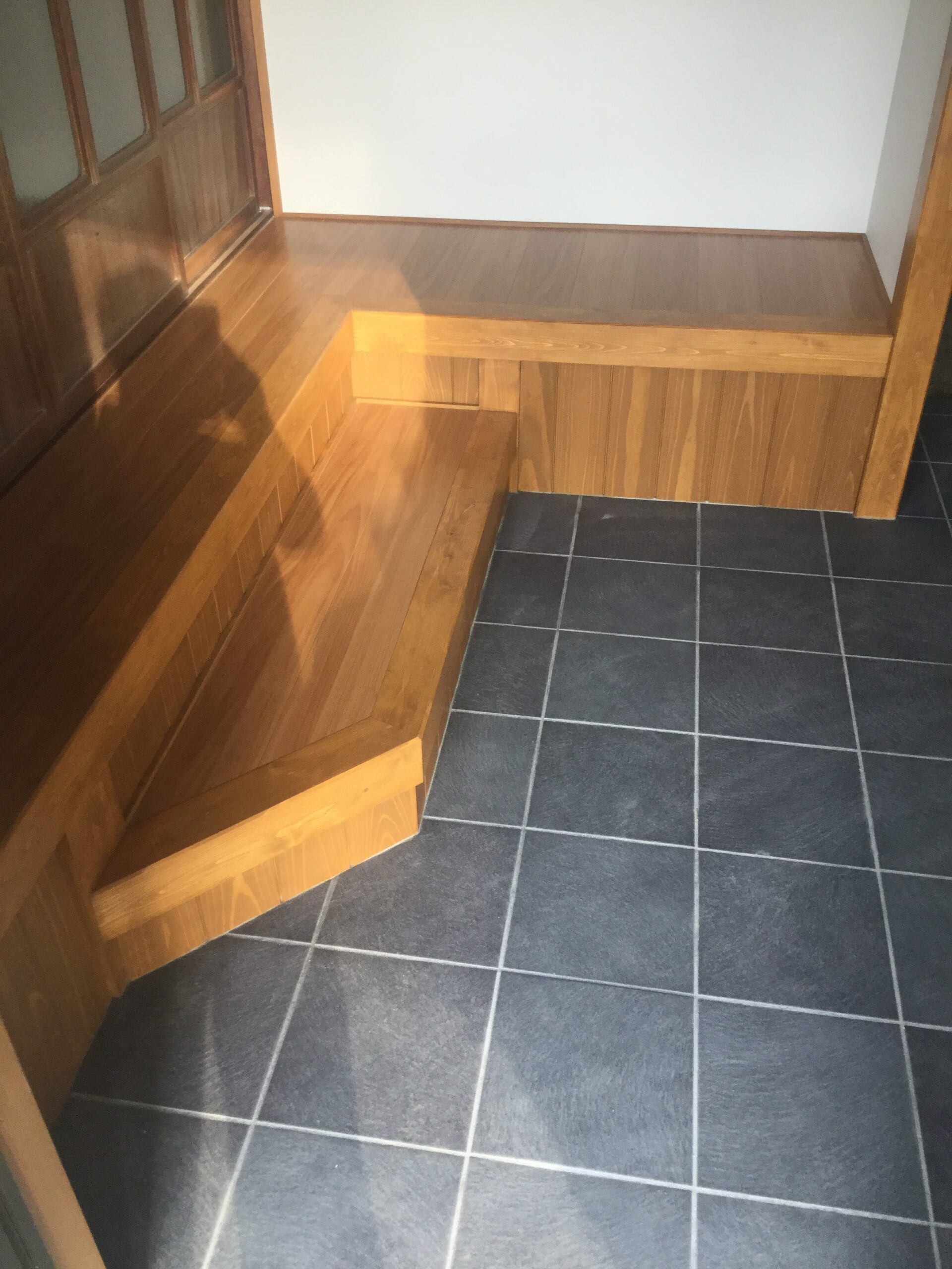元々広かった玄関スペースに踏み台兼腰かけを造作しました。