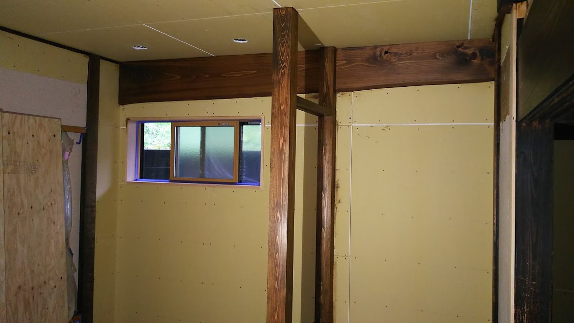 本日より室内の木部塗装を始めました。塗料はアールジェイの『いろは』を採用しました。森永