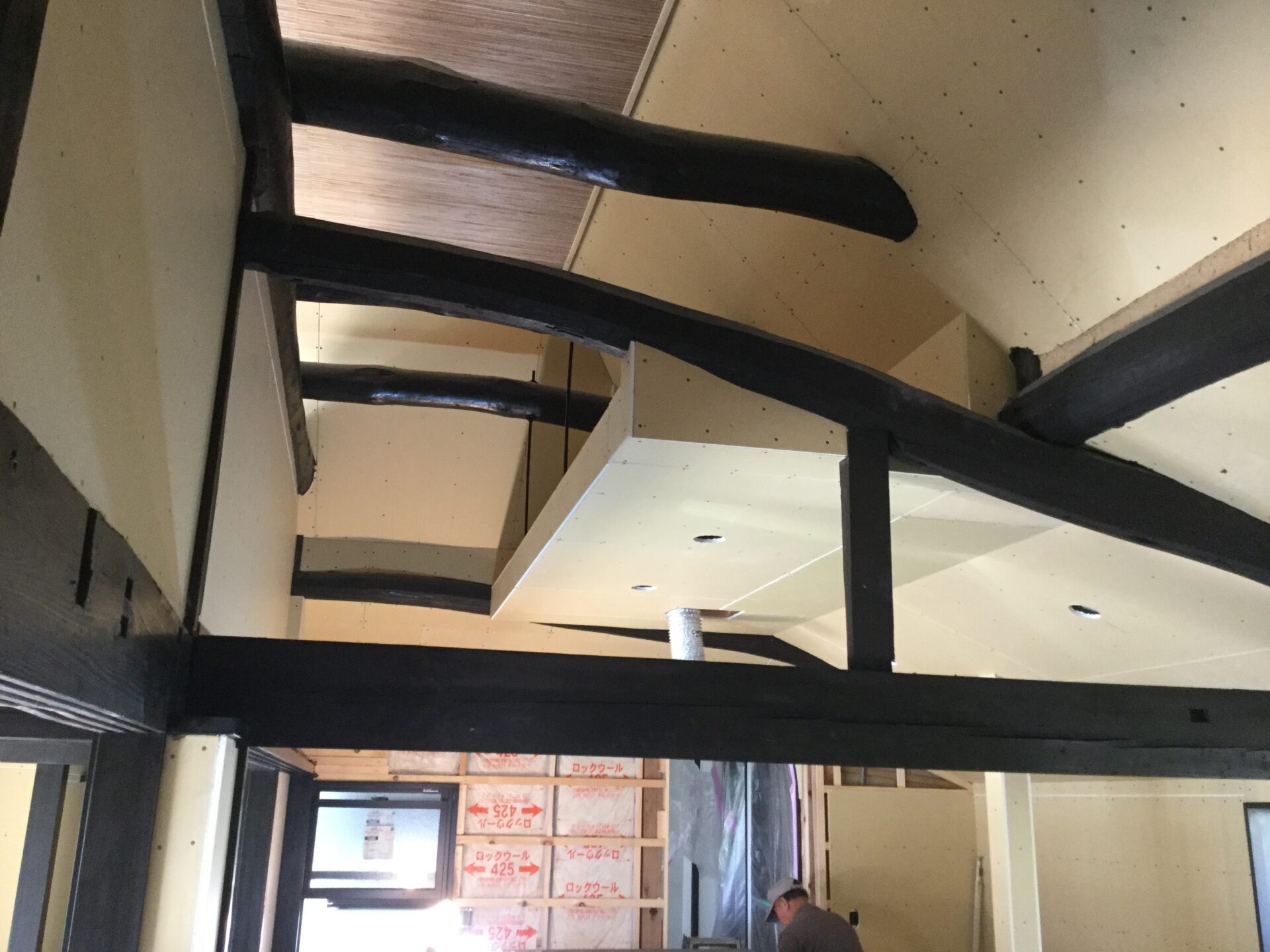 古民家再生です。だんだんと雰囲気が変わってきました。キッチンの上は二重天井でまるでキッチンスタジアムみたいです。