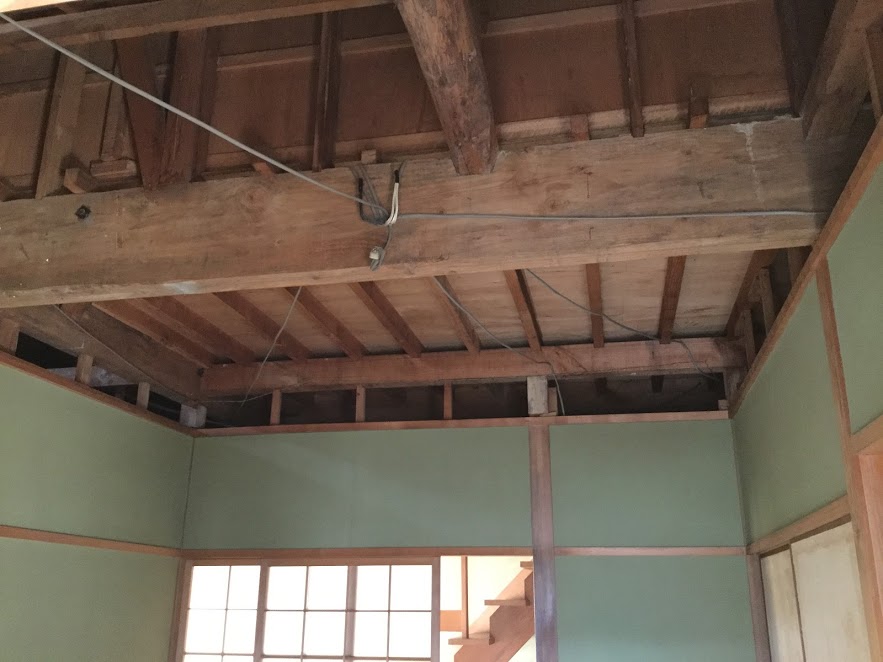 解体が始まりました。和室の天井を落として新規の下地をしてクロス仕上げの予定です。お風呂もユニットバスを増築して設置します。森永