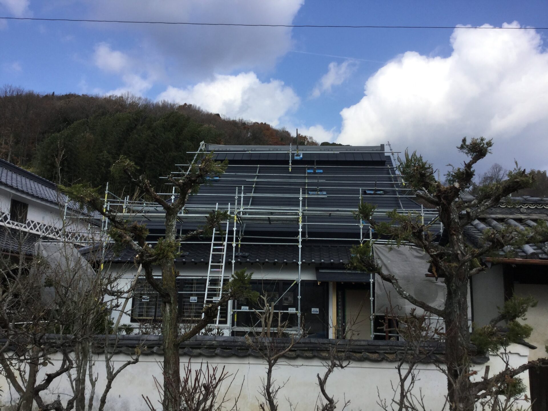 屋根板金がもうすぐ終わります!!やったー!!急勾配は怖くて怖くて(T0T)