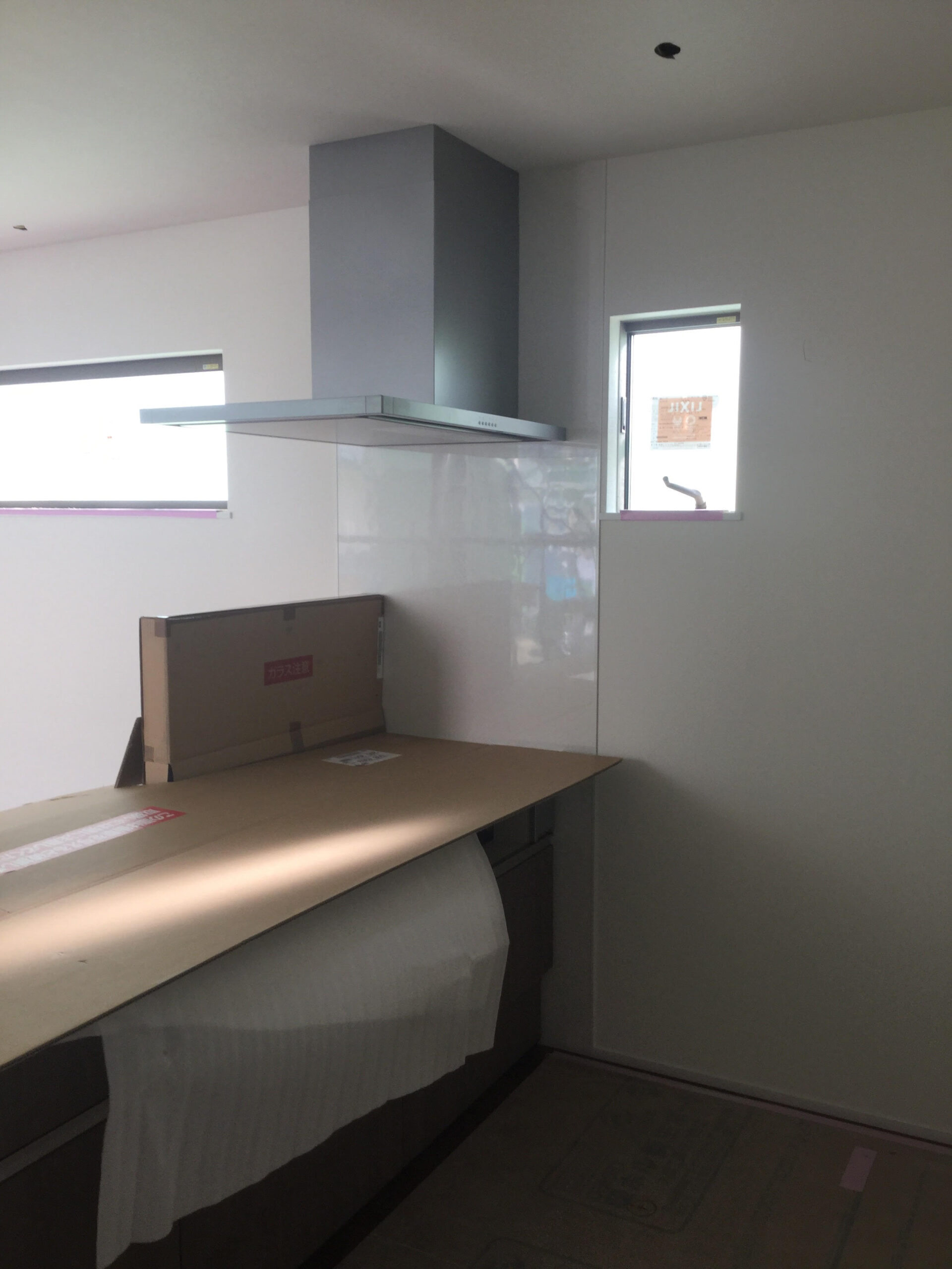 キッチンの設置が完了しました。キズを付けないよう養生も完璧です。佐々木