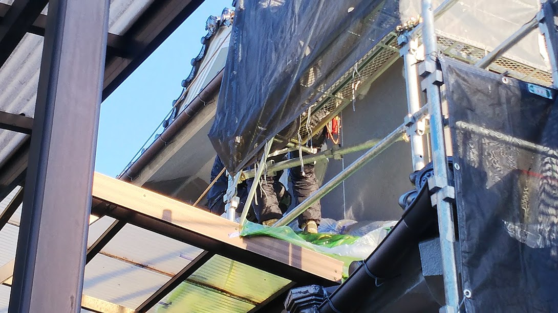 ただいま下塗り真っ最中!雪が吹雪いたりでなかなか進みません…。寒いのに職人さんありがとうございます!仕上りだけでなく体調管理も気を付けてね。森永
