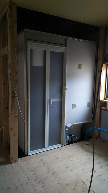 ユニットバスの設置が完了しました。引き続き内部の造作を進めていきます。今回採用されたユニットバスはTOTOのサザナという商品です。森永