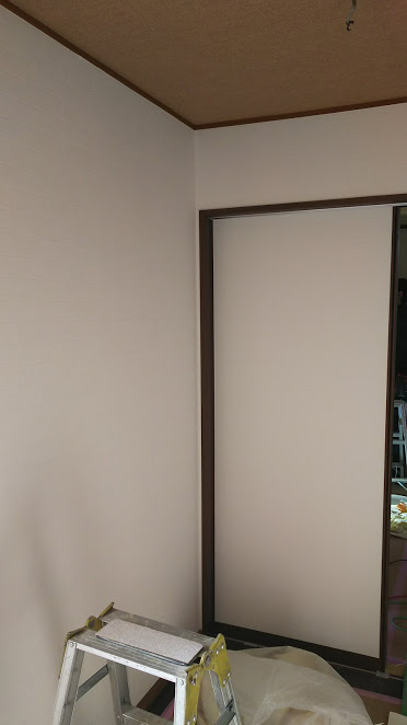 クロス工事が終盤を迎えています。昨日より入ってもらって本日終わりそうです。三人の職人さんが手際よく作業してくれています。森永