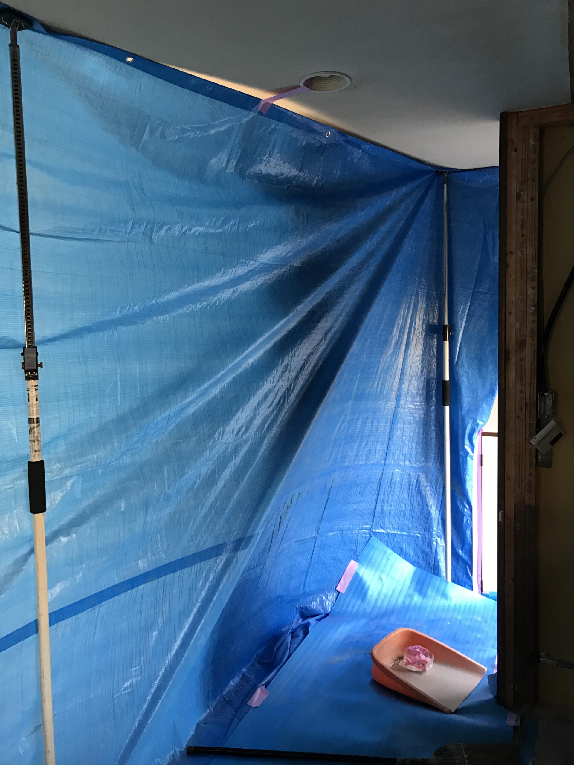 周りに埃がいかないよう養生をしております。