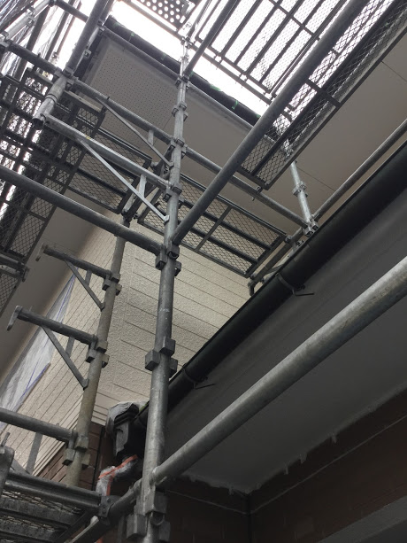2階と軒天の塗装が進んでいます。1階部分は色を替えますのでツートンカラーになります。森永