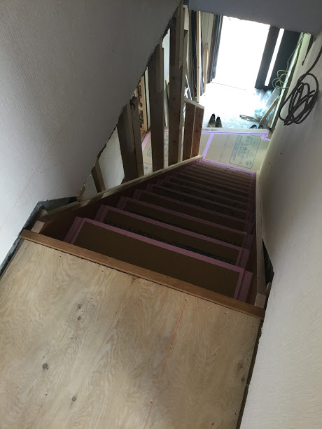 階段が掛かりましたので、お施主様立会の中間検査を行いました。今は仮住まいのアパートにいるのですが、可愛い娘さんが何度も登ったり下りたりを繰り返して喜んでいました。森永