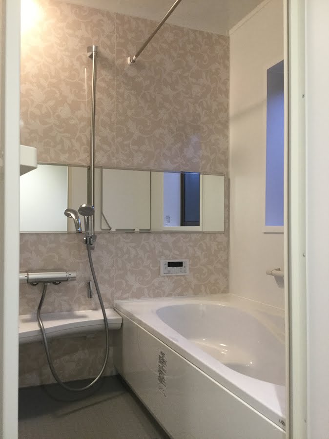 本日工事の終わっている2階部分と1階の洗面浴室廻りの美装をしました。ユニットバスの養生も取れてピカピカの浴室が現れました。森永