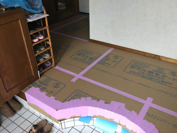 本日から工事開始しました。ユニットバスの交換、キッチンの交換工事です。実際解体する所までの通路の養生をしました。森永