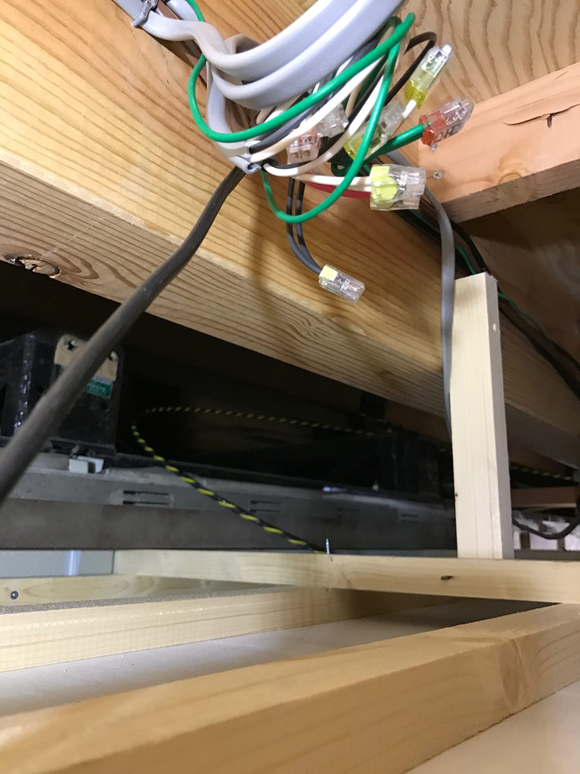 天井裏から配線工事をしています。
