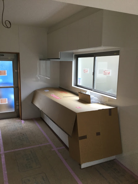 キッチンが組みあがりました。来週お引渡しです。電気、水道、塗装等々急ピッチで進めていきます!森永