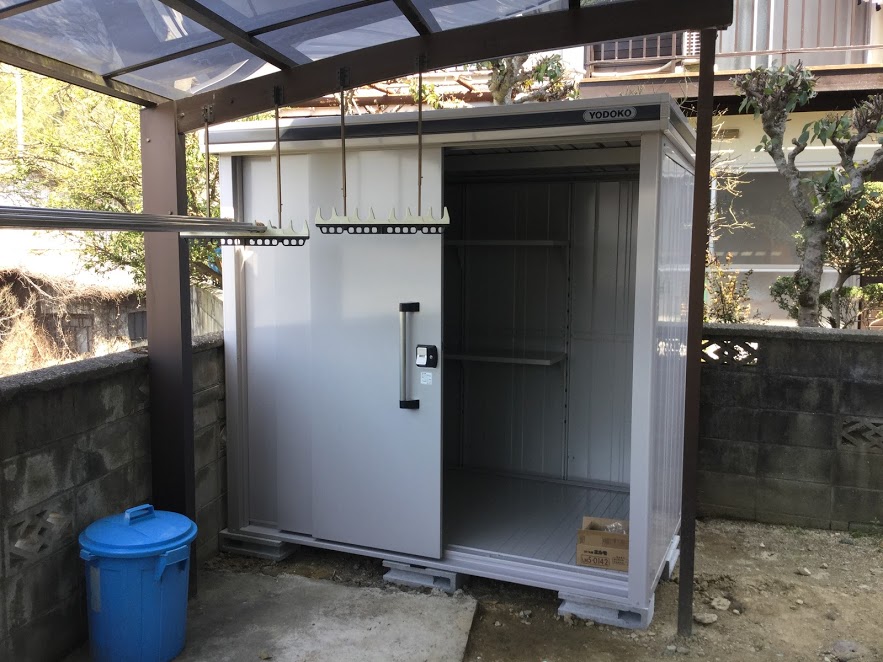 本日外部に物置を設置しました。以前使っていた物置は錆びて穴だらけでしたけど、新しくなってお施主様も喜んでいます。森永