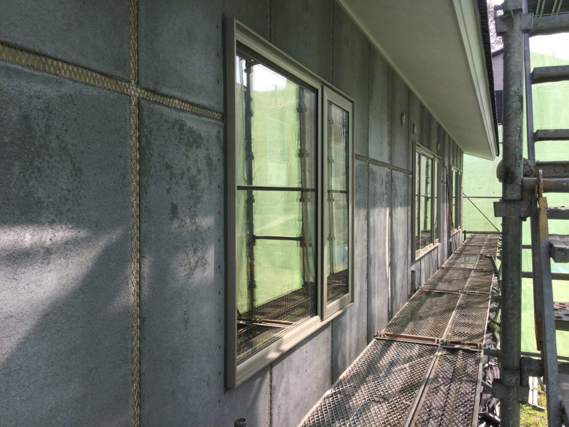 新築現場です。今回外壁をモルタル+ジョリーパットで仕上げるのですが壁の通気を妨げないベースB大壁工法で施工いたします。家の為にもなって外観は損なわず良い工法です。 原田