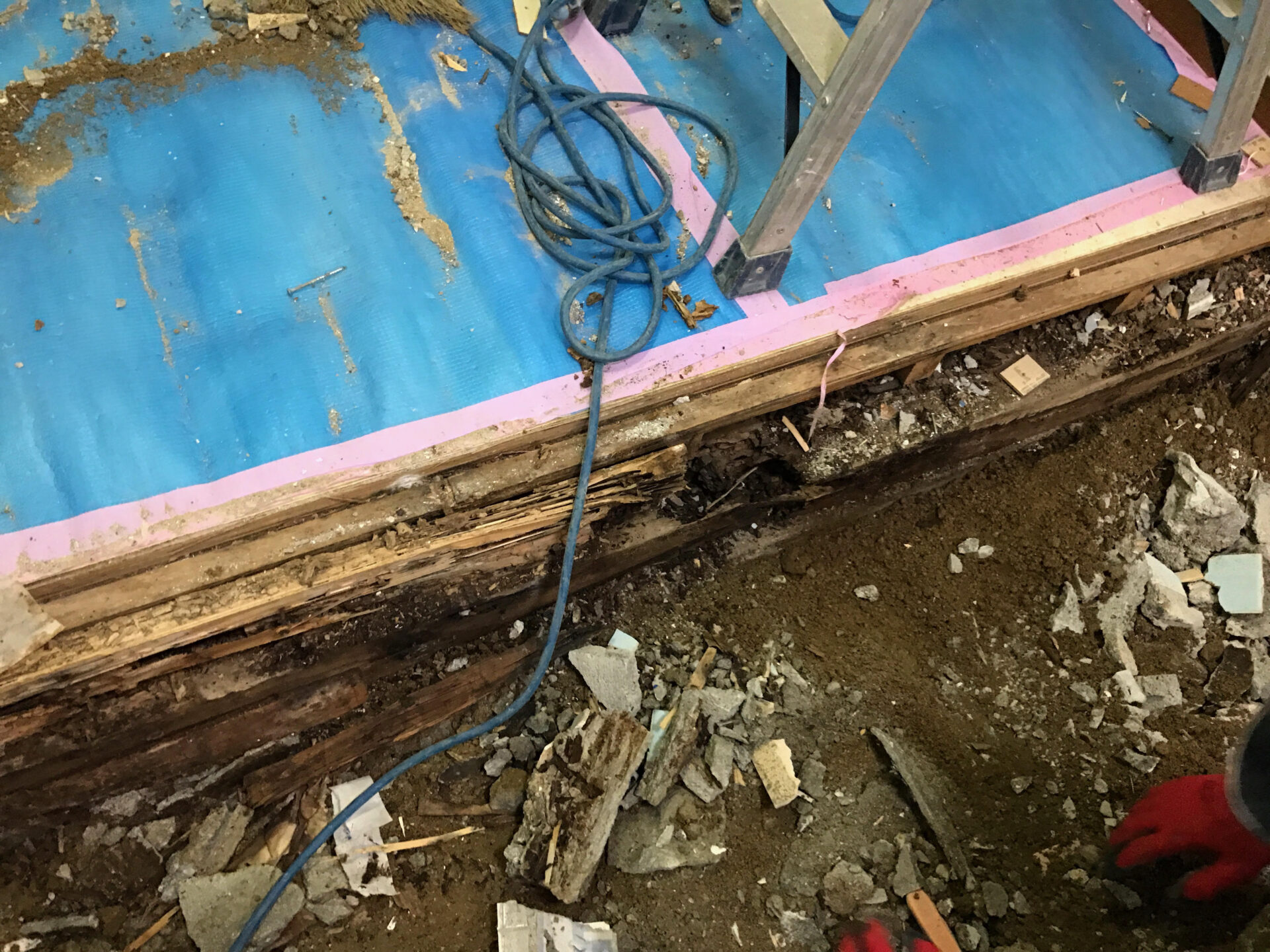 土台が腐っていたので床を全部やり替えるよう工事変更させて頂きました。