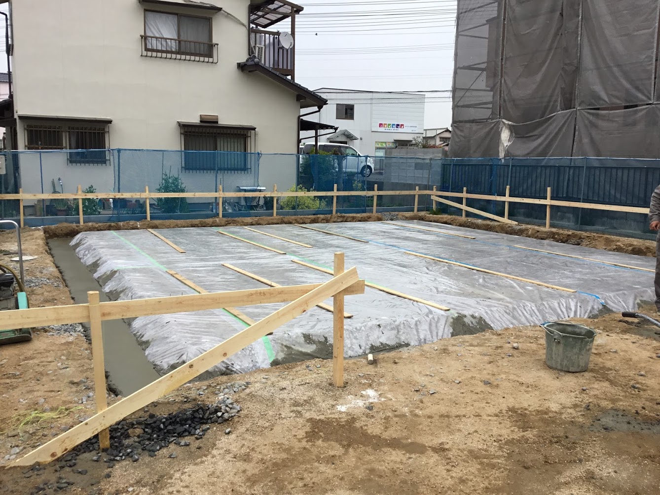 床堀、砕石、シート、均しコンクリート工事が完了しました。
