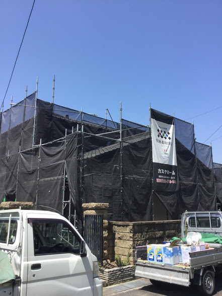 外壁塗装工事が進んでいます。今月引渡の為、暑い中職人さんたちが頑張ってくれています。森永
