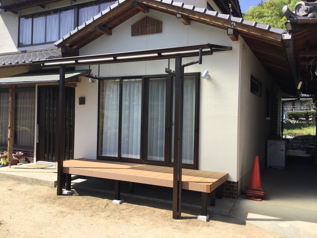 リビングの一番大きな窓から直接出入りできるテラスを設置しました。