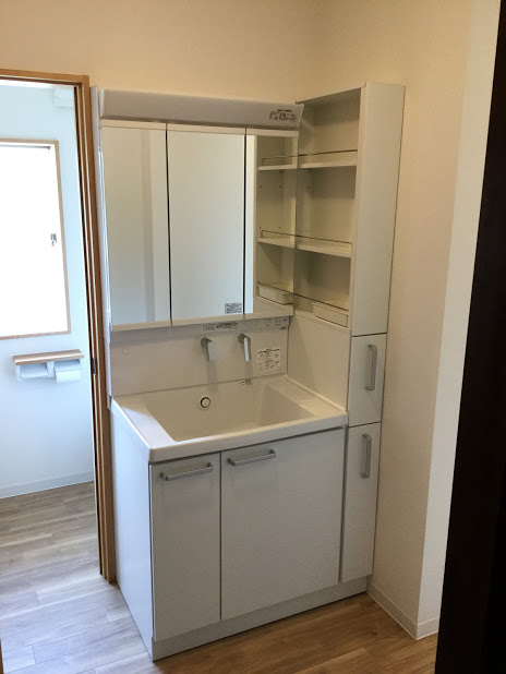 洗面化粧台が付きました。TOTOのサクアという商品です。工事途中に追加で収納が入りましたが営業の迅速な対応で間に合いました。森永