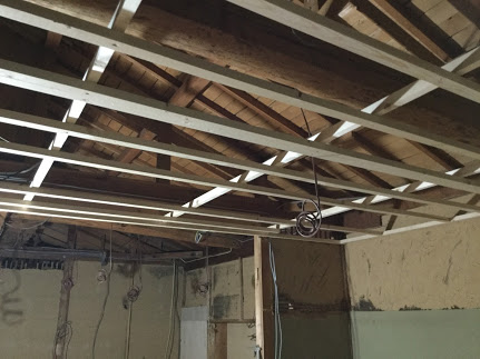 床の下地が出来ましたので天井の下地作業に移っています。新築でもリフォームでも工程は同じで、最初に床を上げます。そして天井をして壁に移ります。なんでも流れが大事です。工期短縮につながってます。森永