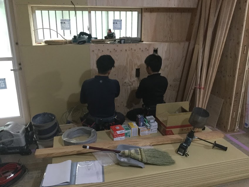 電気配線の仕込み作業を仲良くやってくれています。とても頼りになる電気屋さんです。森永