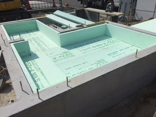 本日は基礎工事完了後、玄関部のタイル下地を施工する前に断熱材を敷き詰めました。