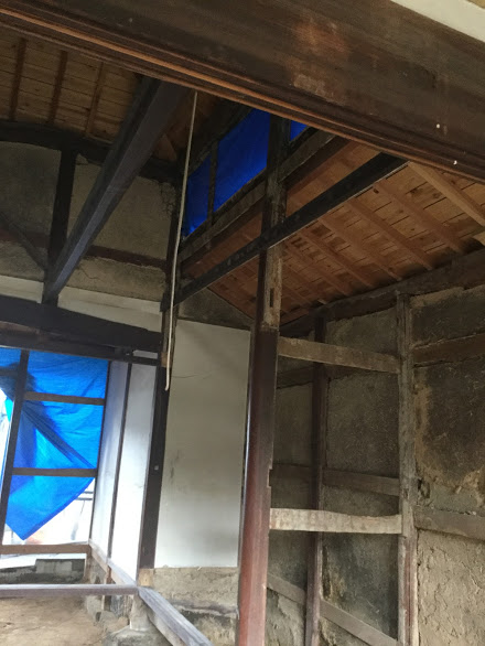 解体がほぼ終わりました。水道屋さんが配管をしてくれています。あとは天気次第で屋根の解体をします。屋根を取った後は広いバルコニーになる予定です。森永