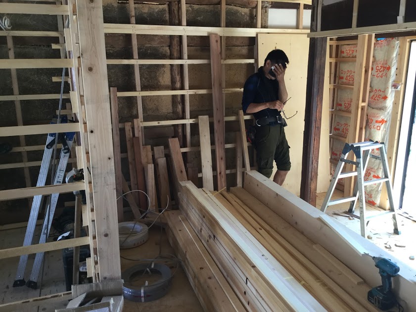 まだまだ暑い日が続きますね~。電気屋さんが泣いているように見えますが、汗を拭いているだけです。工事中は風が抜けるか、扇風機で風をおこすしか方法がないので現場は暑いです。職人の皆々様ありがとうございます。森永