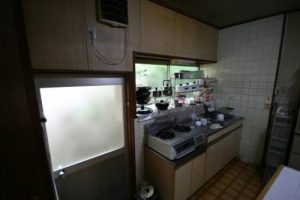 LDKの工事前の様子です。真壁構造です。リフォーム後は大壁構造になります。