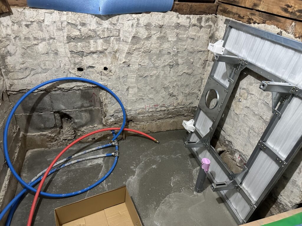 配管仕込みです。洗濯機の位置関係などを出しています。