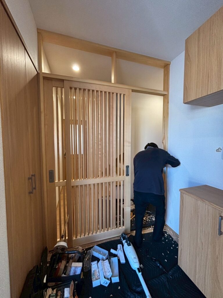 倉敷市|【建具工事】猫ちゃんが脱走しないための格子ドアをつけました!