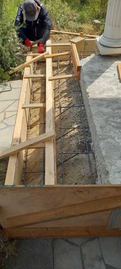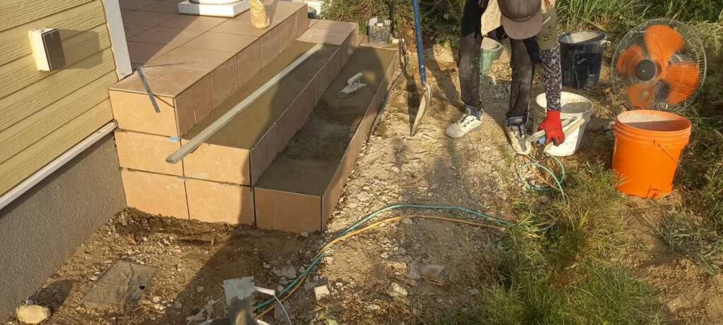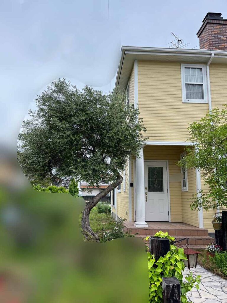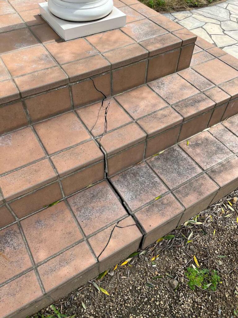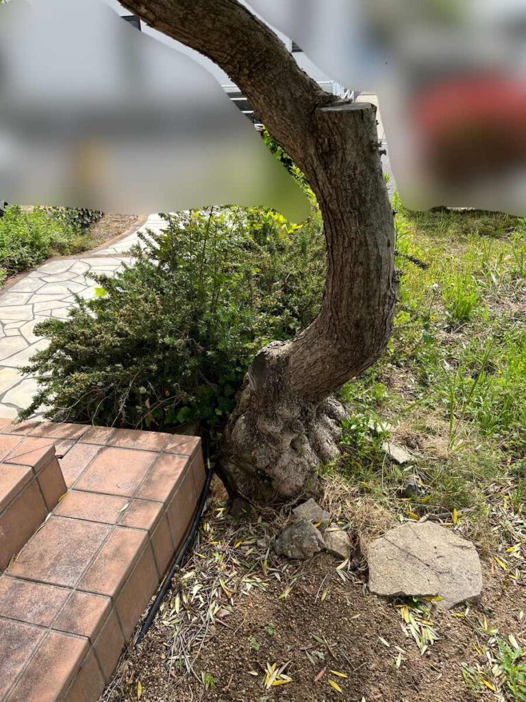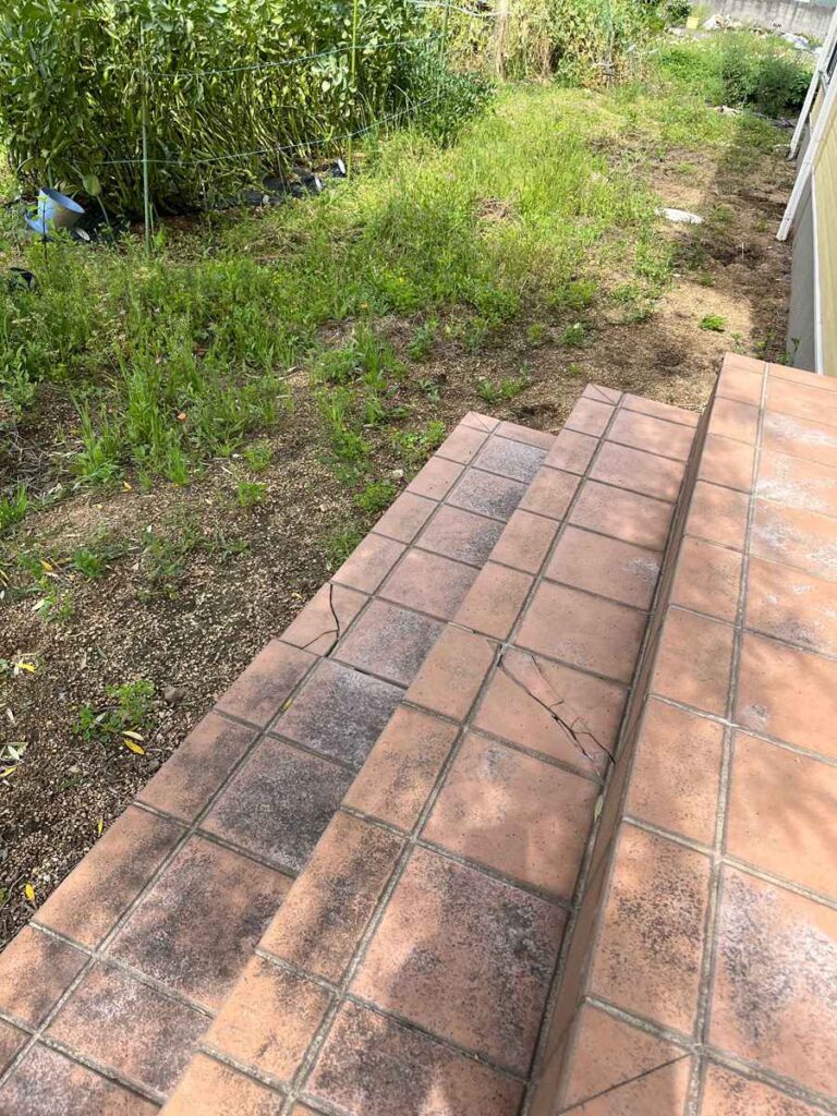すぐ横に植えられていたオリーブの木の根っこでが原因で、成長した根が下地を押し上げ、タイルを割ってしまっていました。