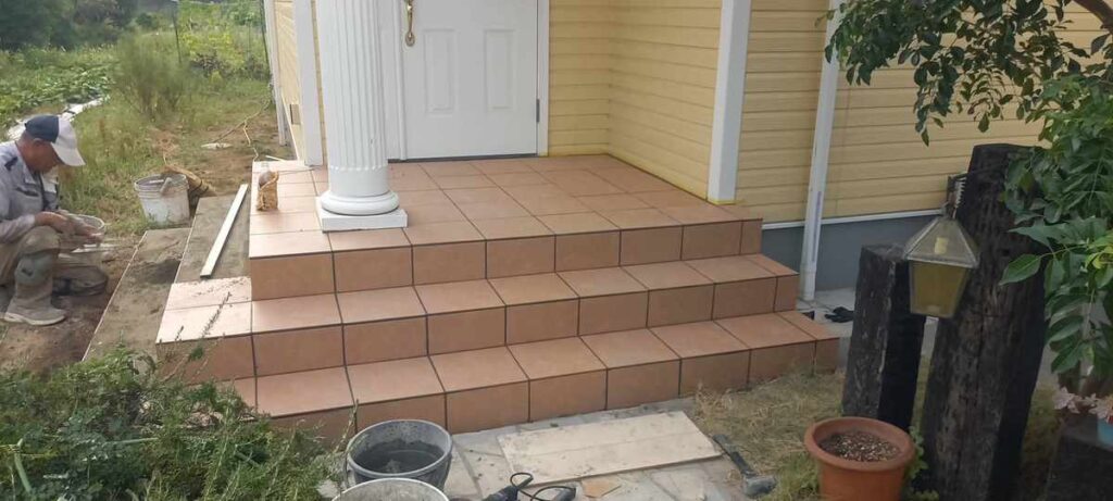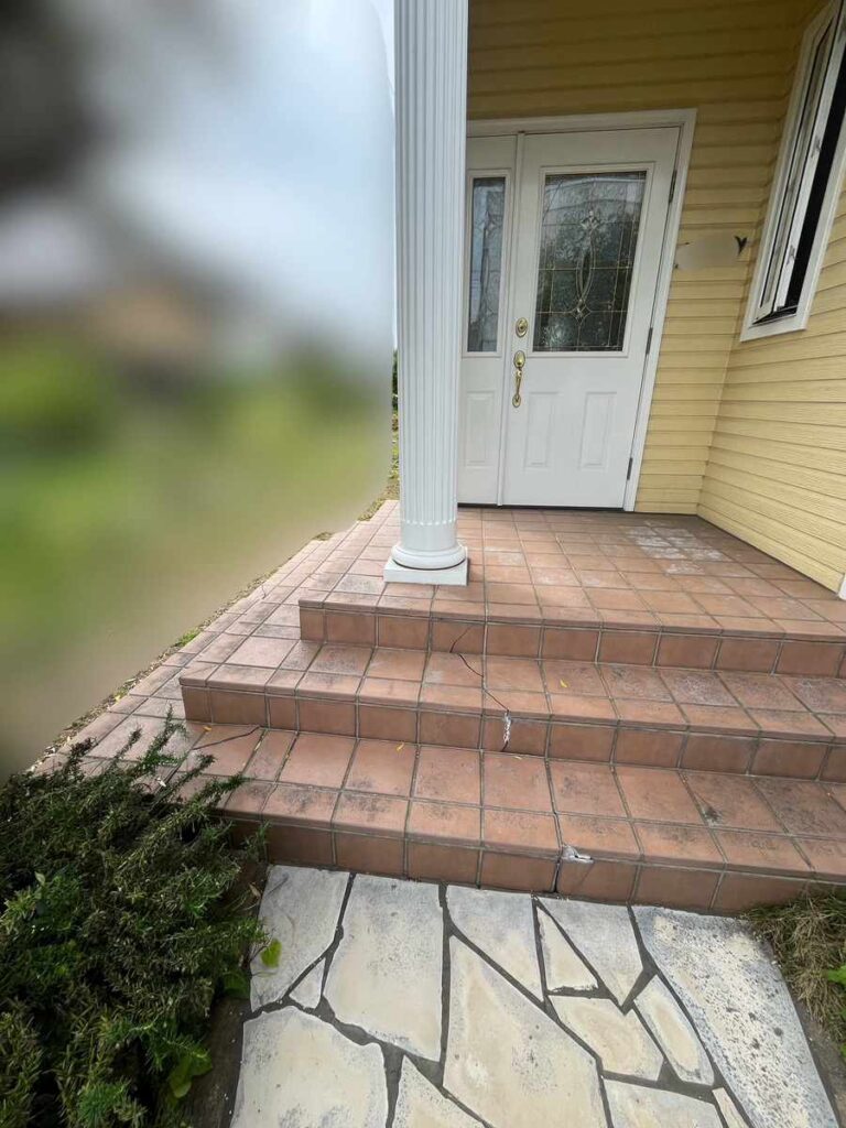 玄関ポーチのタイル割れや表面の汚れが気になるとのことでお問い合わせをいただきました。