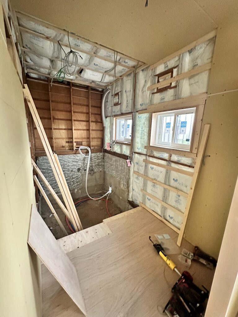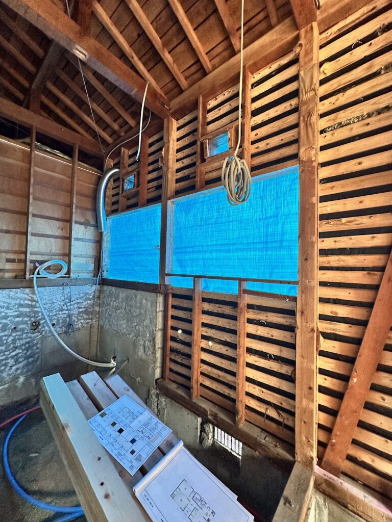 解体中です。今回断熱性の向上のためにサッシも好感しております