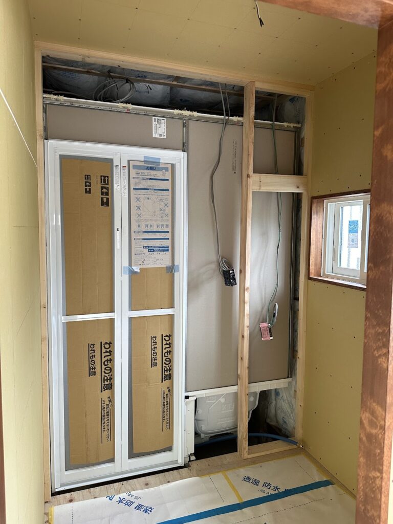 今回の工事ではお風呂を広げたためその分洗面所がダイニングキッチン側に出てきます
