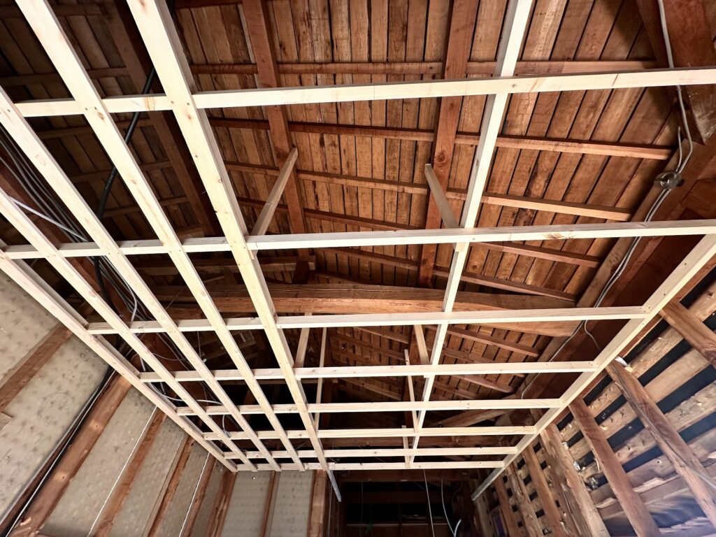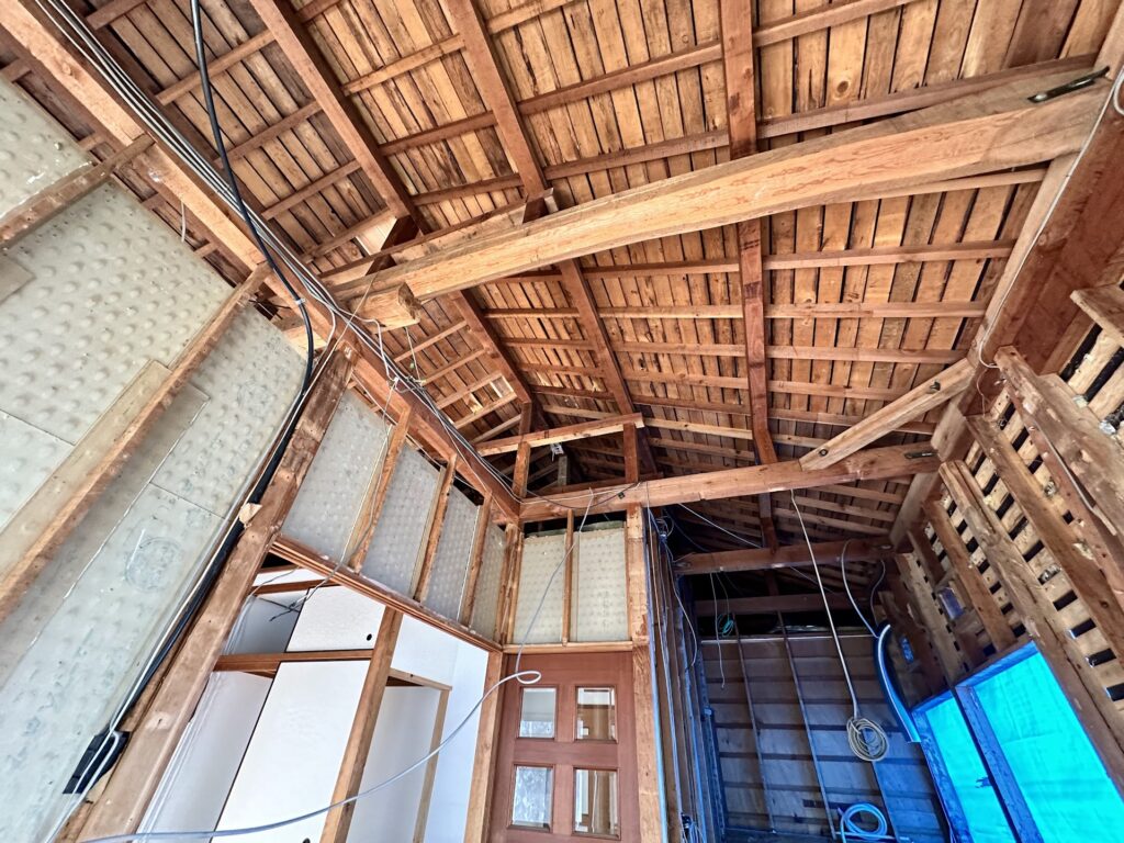 解体後の写真です。大きな張りが通っていますね。左側にある柱は絶対に抜けない柱ということがわかります。