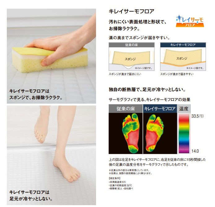 ・独自の断熱層を用いる事で足元がヒヤッとせず、汚れにくい形状で御手入れがしやすい構造になっております。
