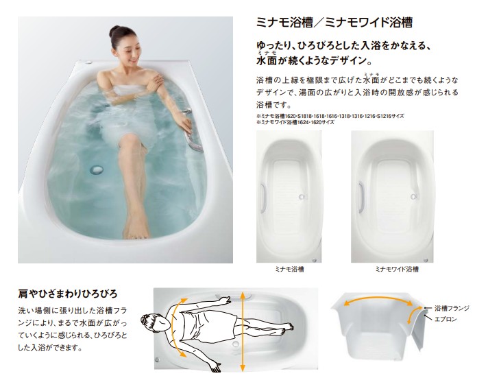 ・浴槽の上縁を極限まで拡げることで、まるで水面(みなも)がどこまでも続き拡がる様な解放感のあるデザインとなっています。