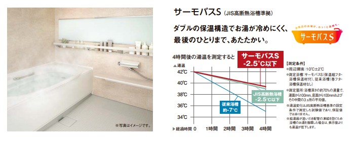 ・『保温組フタ』・『浴槽保温材』という2種類の保温材を使用する事で、従来の浴槽より高い保温効果を発揮します。