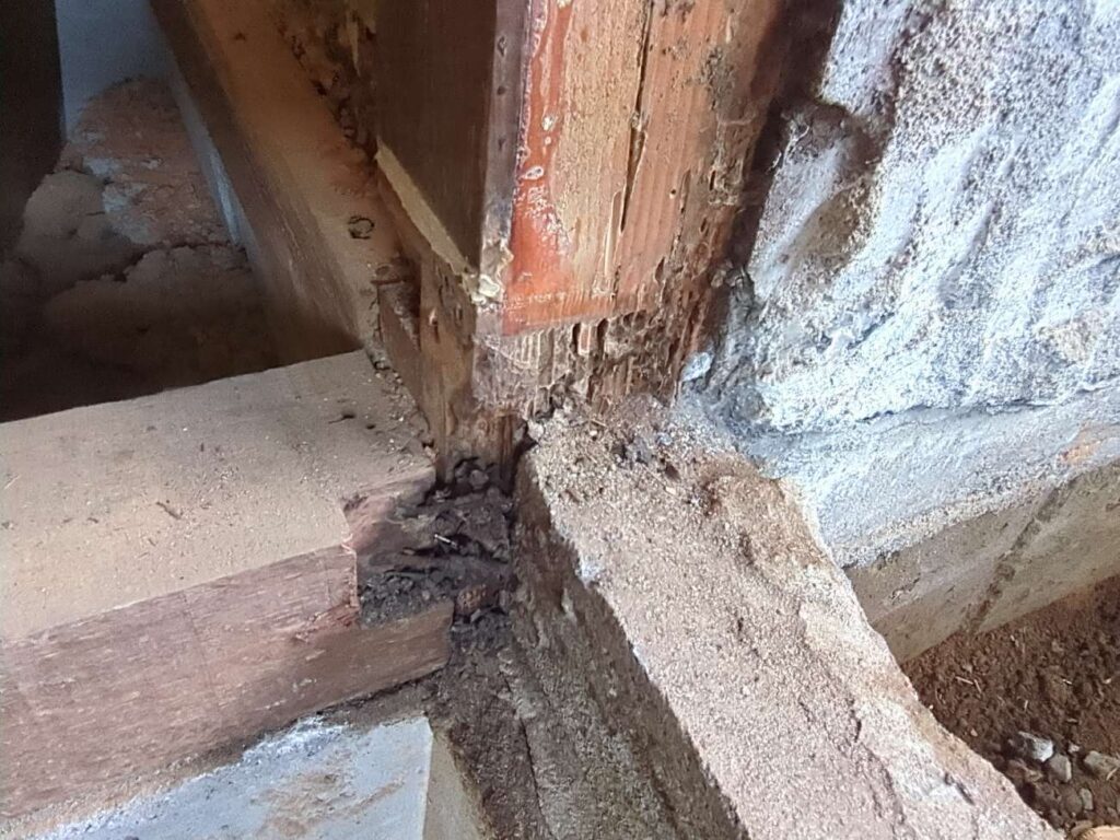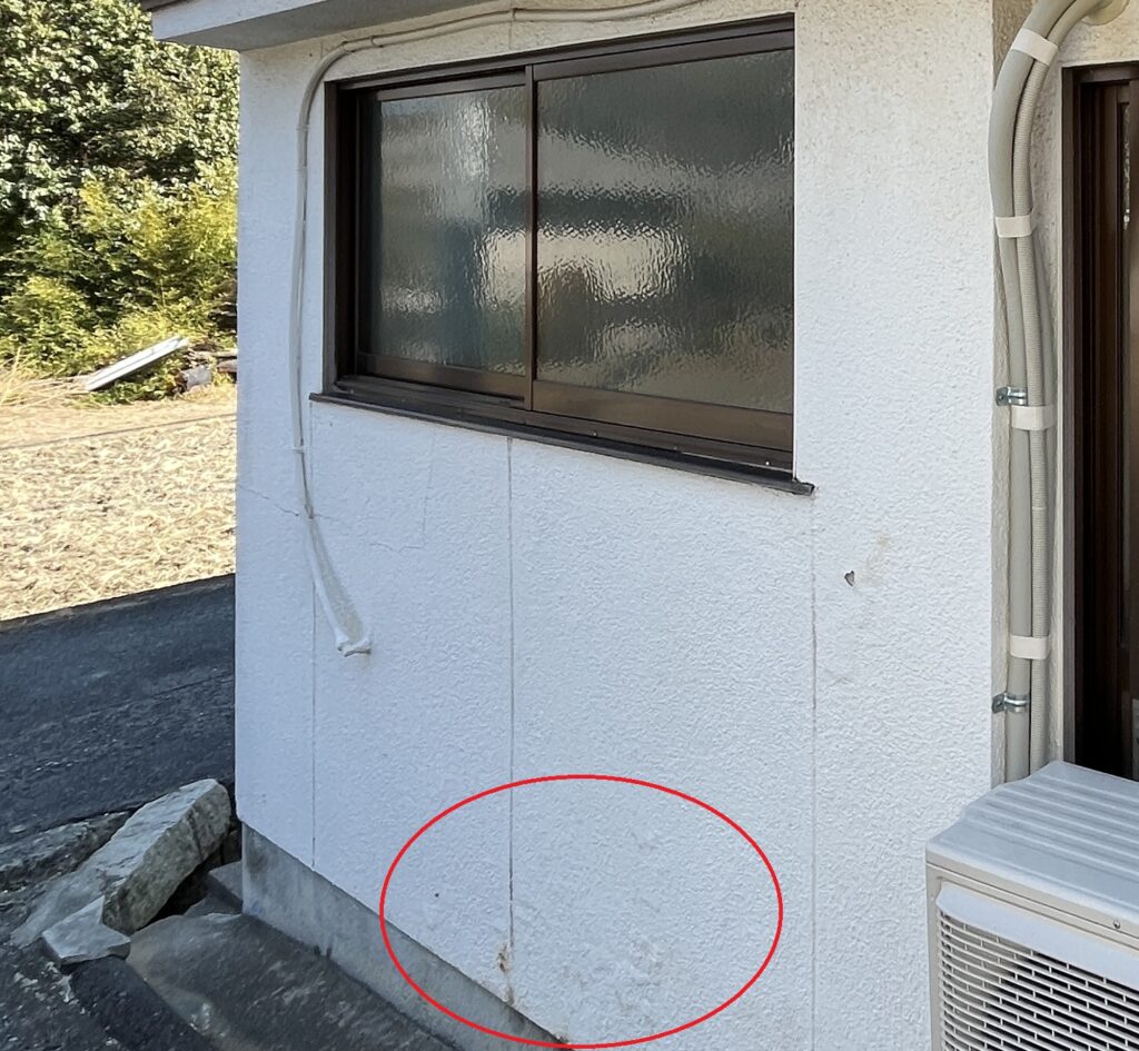 浴室水栓の反対の外壁の一部が膨らんでいます。 基礎部分に茶色くサビが見えたため、漏水の可能性が高いと判断しました。